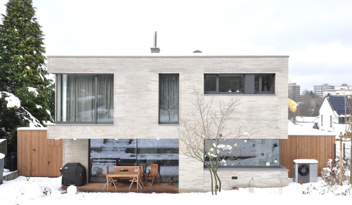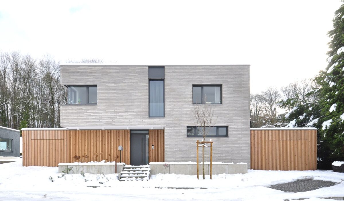 PROJEKT NEUBAU EFH STATUS REALISIERT TYPOLOGIE WOHNEN ORT HAGEN BGF 310 QM JAHR 2022 – 2024 BAUHERR PRIVAT klare Kanten… Das Einfamilienhaus folgt einer präzisen architektonischen Haltung, die auf Reduktion, Proportion und Materialehrlichkeit basiert. Zwei klar ablesbare Baukörper bilden die Grundlage des Entwurfs: Ein kompakter, zweigeschossiger Hauptkörper aus hellgrauem Mauerwerk wird von einem eingeschossigen Sockel mit vertikaler Holzfassade ergänzt. Diese bewusste Differenzierung schafft eine ausgewogene Balance zwischen Massivität und Wärme. Die Fassadengestaltung ist zurückhaltend und rhythmisiert zugleich. Großzügige, gezielt platzierte Fensteröffnungen strukturieren die monolithischen Flächen und ermöglichen klare Blickbeziehungen, ohne die ruhige Gesamtwirkung zu beeinträchtigen. Besonders die Eckverglasung im Obergeschoss löst die Kubatur subtil auf und verleiht dem Baukörper eine leichte, zeitgemäße Eleganz. Im Zusammenspiel mit der winterlichen Umgebung tritt die Architektur deutlich hervor: Die klare Linienführung wird durch die Schneedecke akzentuiert, während die Holzoberflächen einen warmen Kontrast zur kühlen, steinernen Fassade bilden. Die Rücksprünge im Erdgeschoss definieren einen geschützten Eingang und einen überdachten Freisitz; sie vermitteln zwischen öffentlichem Raum und privatem Rückzug. Das Projekt steht für eine Architektur, die nicht auf Effekte setzt, sondern auf Dauerhaftigkeit, Präzision und konzeptionelle Klarheit. Es zeigt, wie durch reduzierte Formensprache, hochwertige Materialien und sorgfältige Detailausbildung ein zeitloses Wohnhaus entsteht, das sich selbstverständlich […]